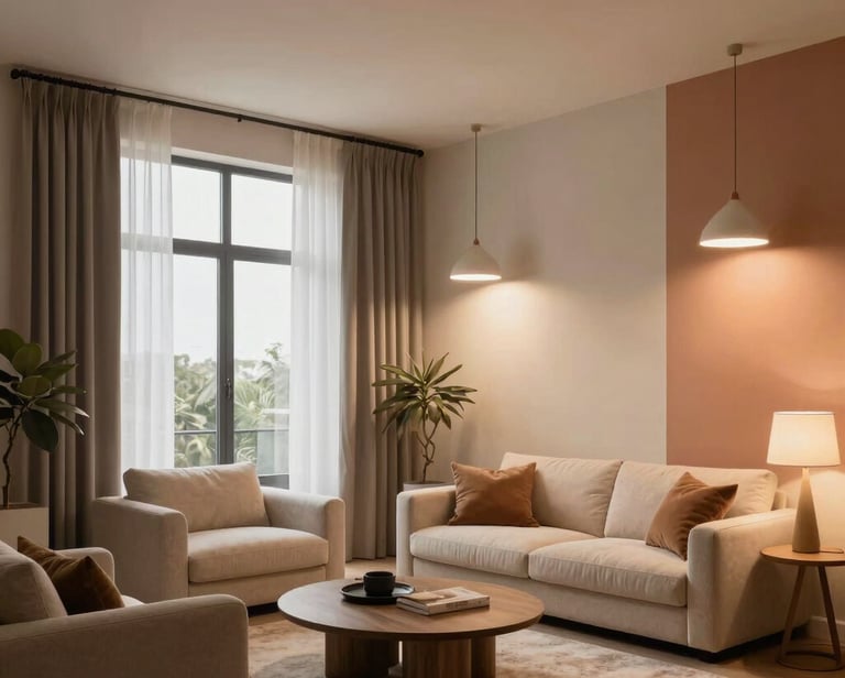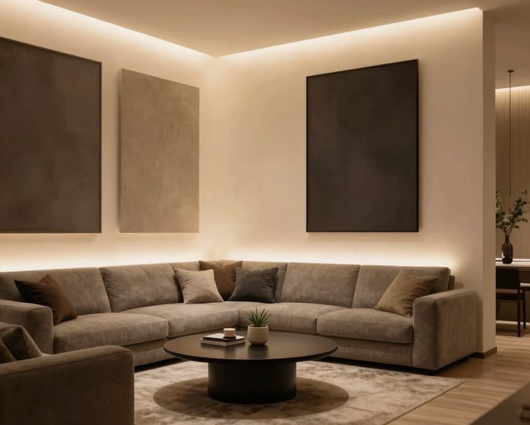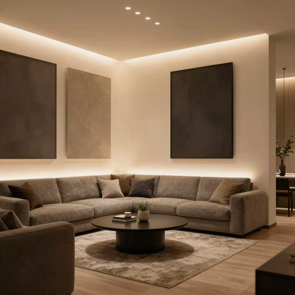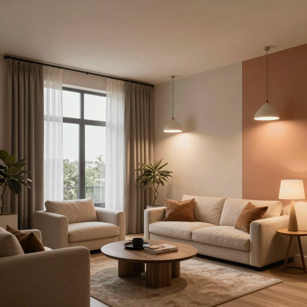إضاءة وألوان : نعتني بتصميم نظام الإضاءة المثالي وتنسيق الألوان بعناية، لتحقيق جو مريح وأنيق في كل مشروع.